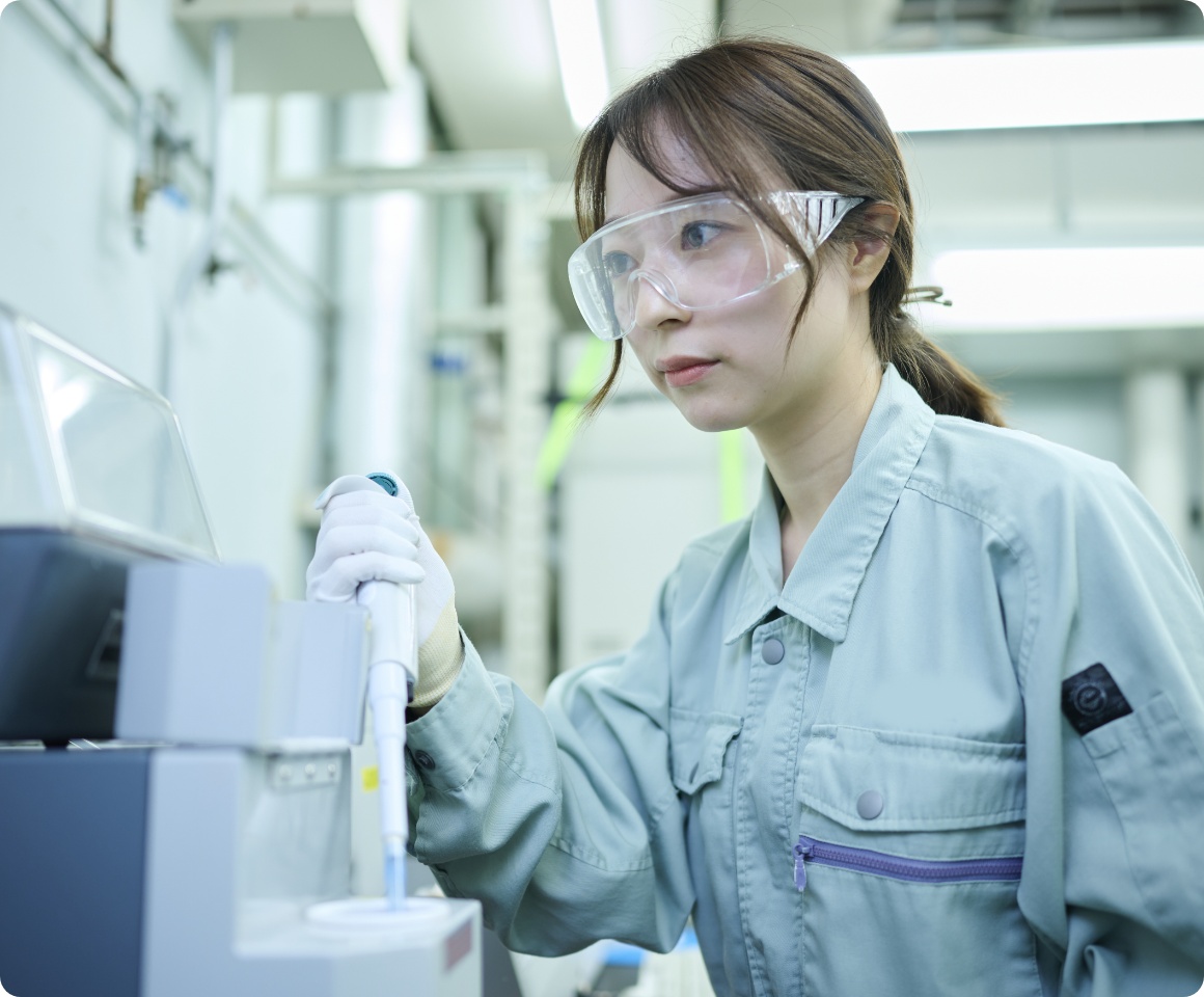 薬学部卒業後の進路としてメーカーの研究開発職を志望していました。クオリカプスを知ったのは学内の合同企業説明会。植物由来のHPMCカプセルを世界で初めて開発した会社が地元・奈良にあることを、そこで知りました。医療用医薬品に比べると、製品の研究開発スパンは短く、より成果を実感しやすいと思い入社を決めました。